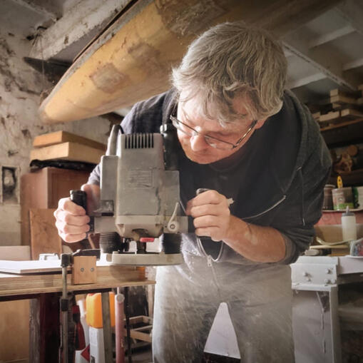 The maker is also the author of all the artistic wood panel treatments presented in this exhibition.
